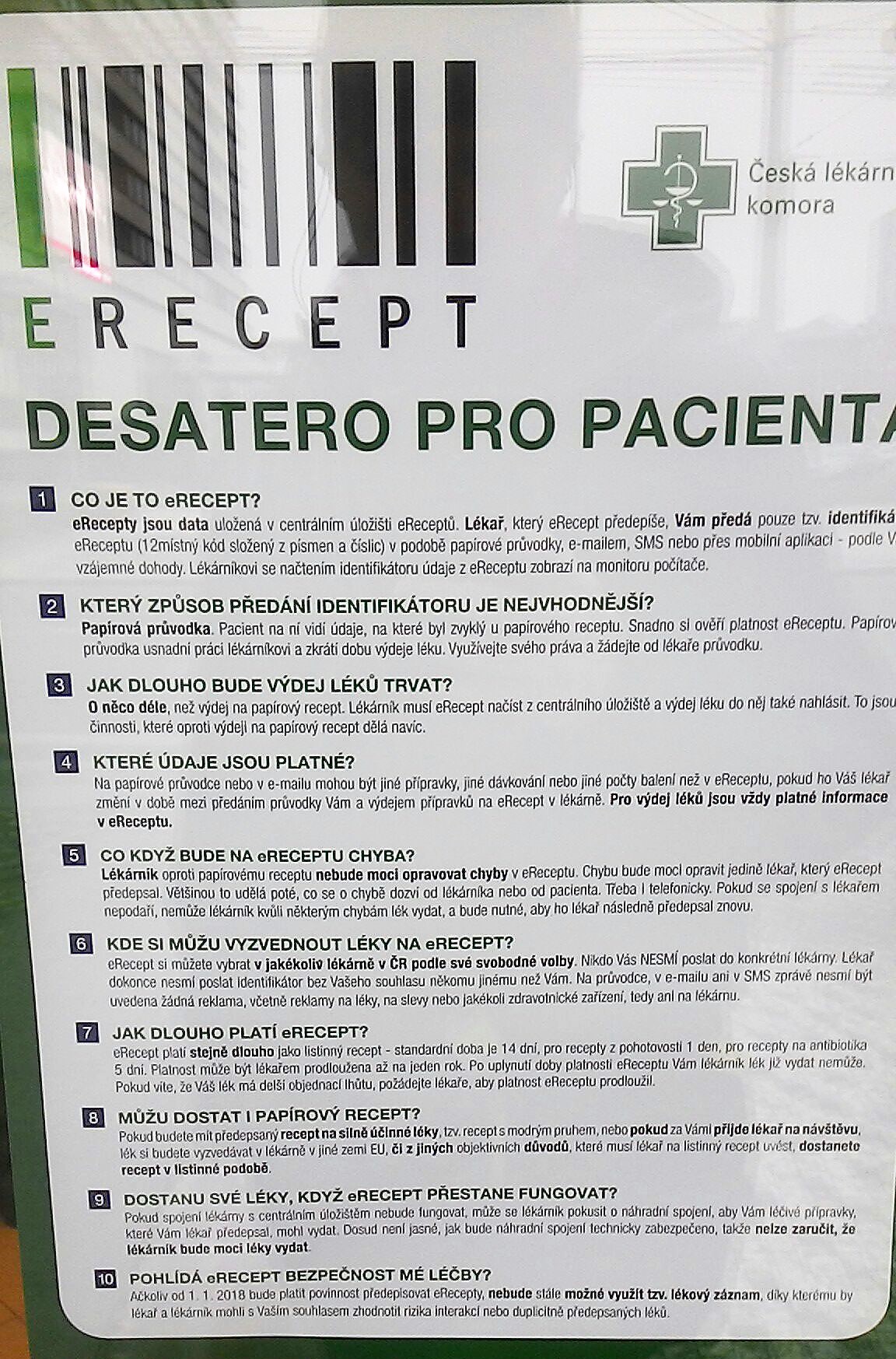 Tak jsem se dneska poflakoval mezi Tescem a nádražím čekajíc na bus do mého zámku a šel jsem kolem lékárny, kde byly informace ohledně eReceptů fungujících od začátku roku. Začetl jsem se a nevěděl jsem, jestli se smát nebo udělat facepalm.